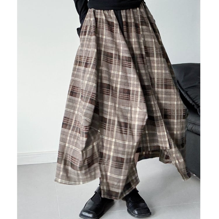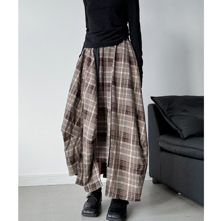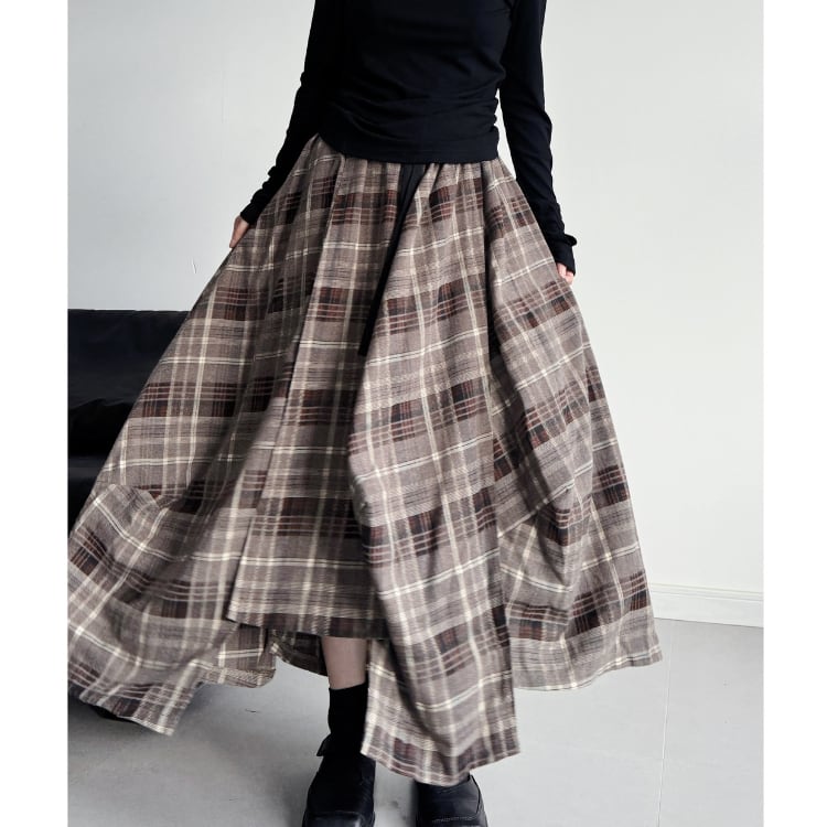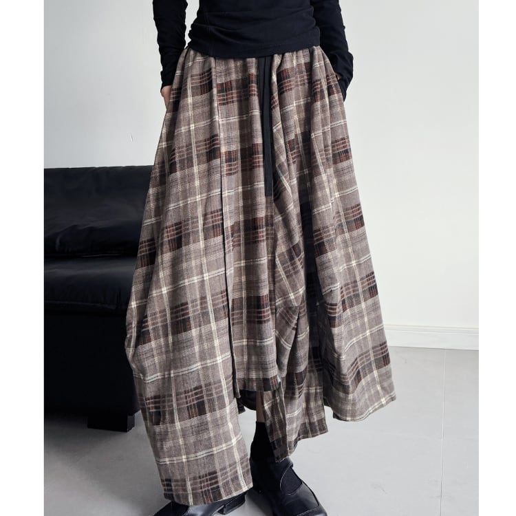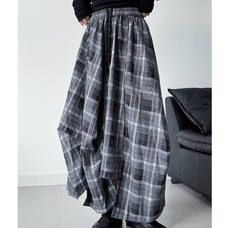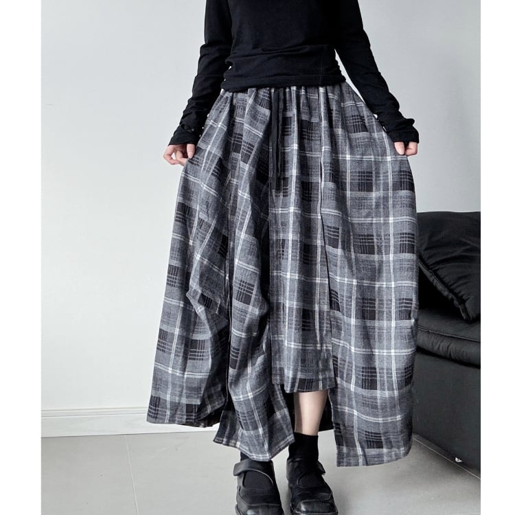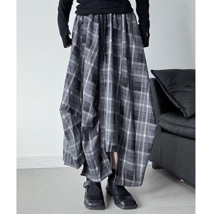ドローストリング アシンメトリー マキシ丈 チェック柄 スカート ◆2col R30253