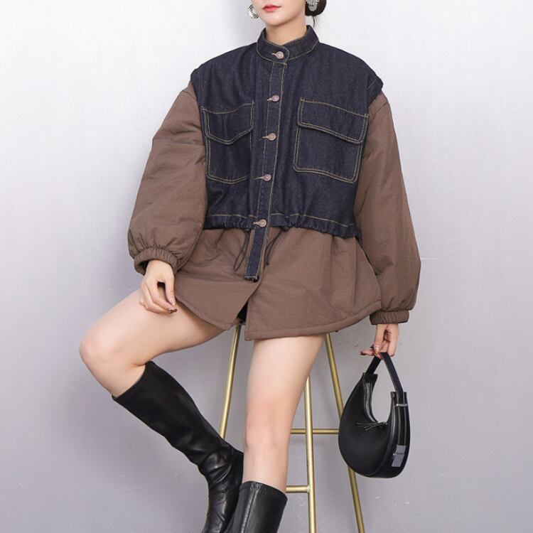 スタンドカラーとショート丈が特徴的なジャケットです。