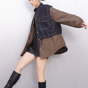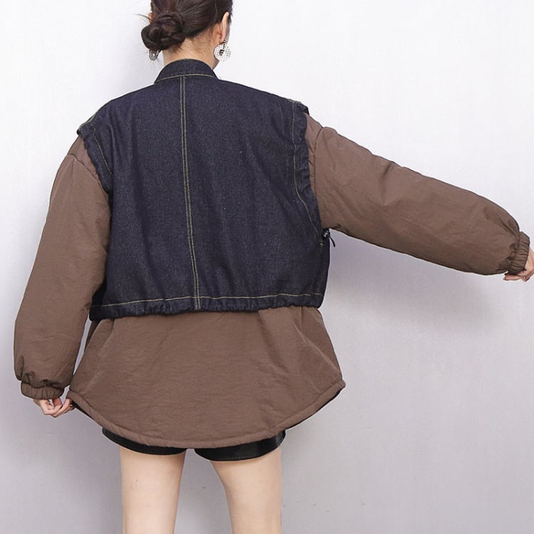 デニム×ナイロンの異素材切り替えデザイン