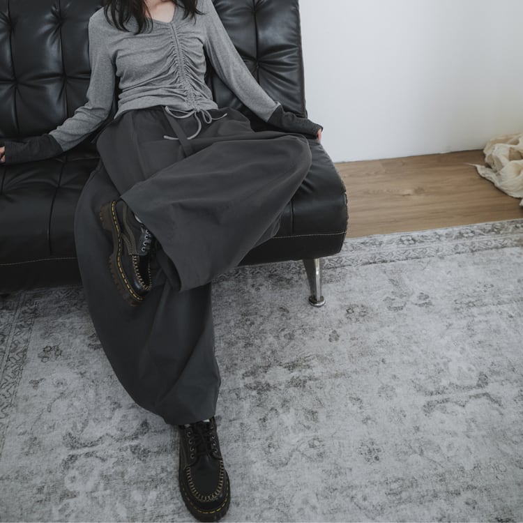 ウエストのドローストリングで、好みのフィット感に調整可能です。