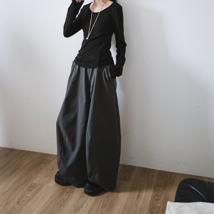 リラックス感漂うシルエットで、こなれた雰囲気を演出するフルレングスパンツ。