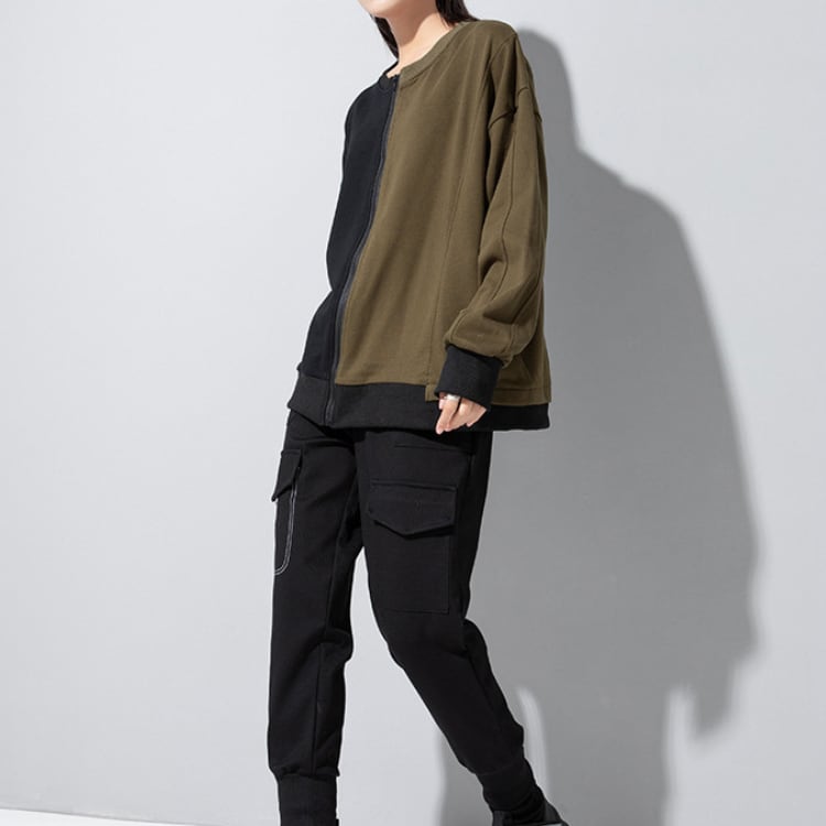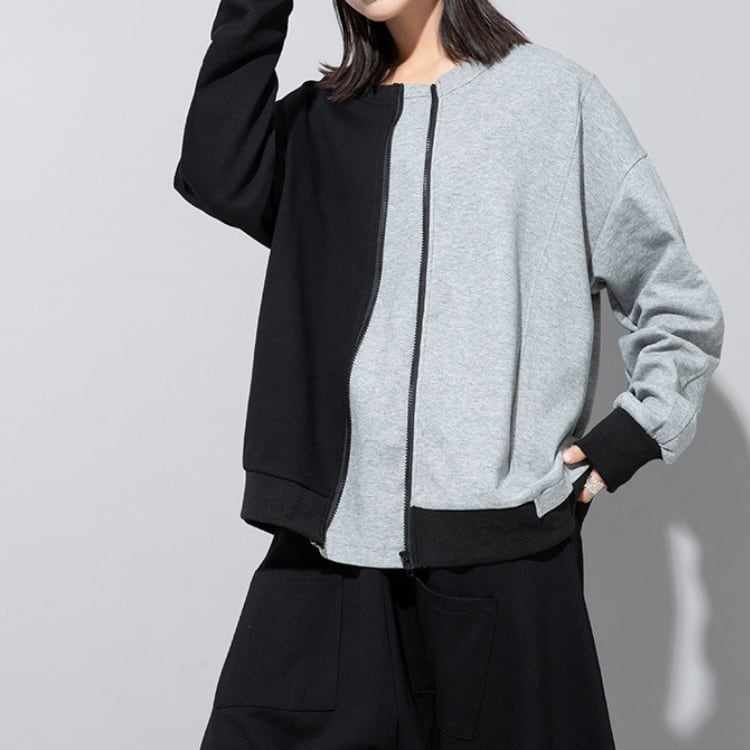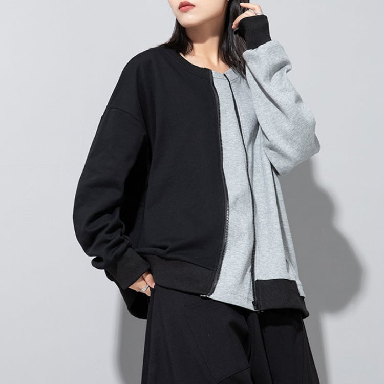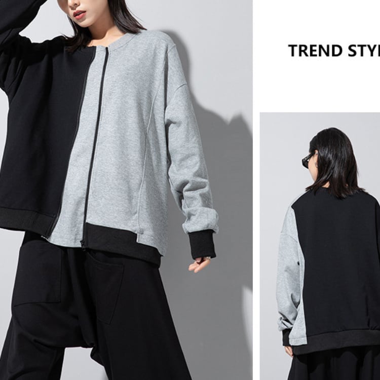 バイカラー ジップアップ スウェットシャツ ◆2col R30275