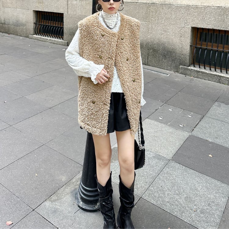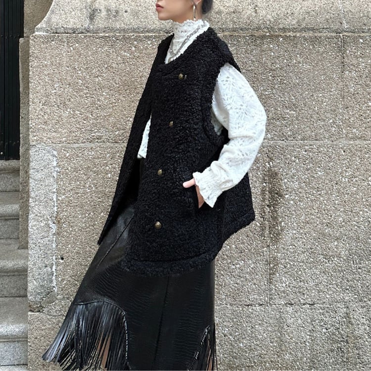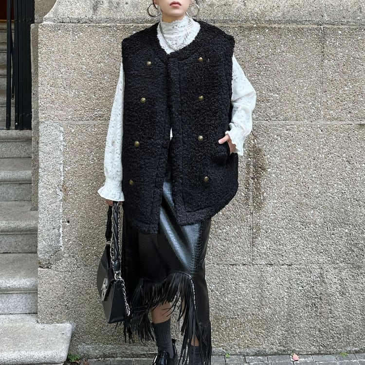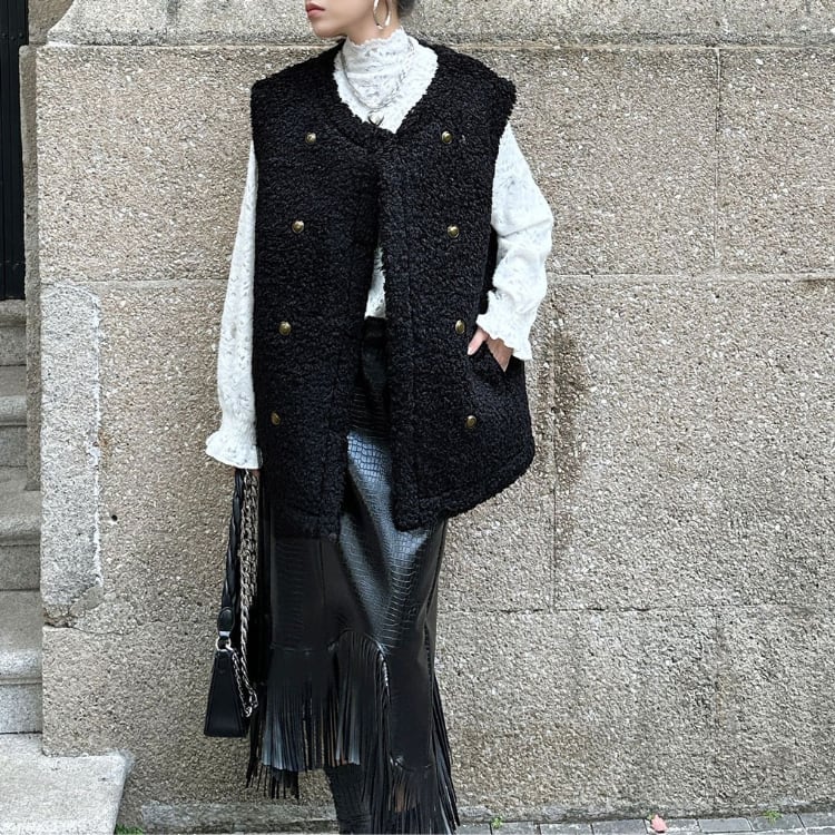 ボアダブルボタンロングベスト ◆2col R30189