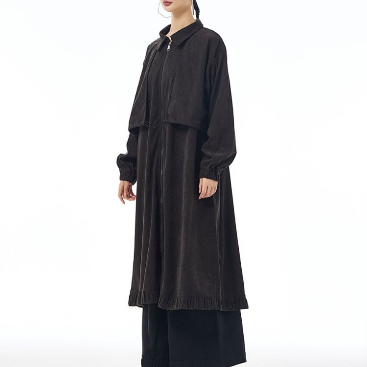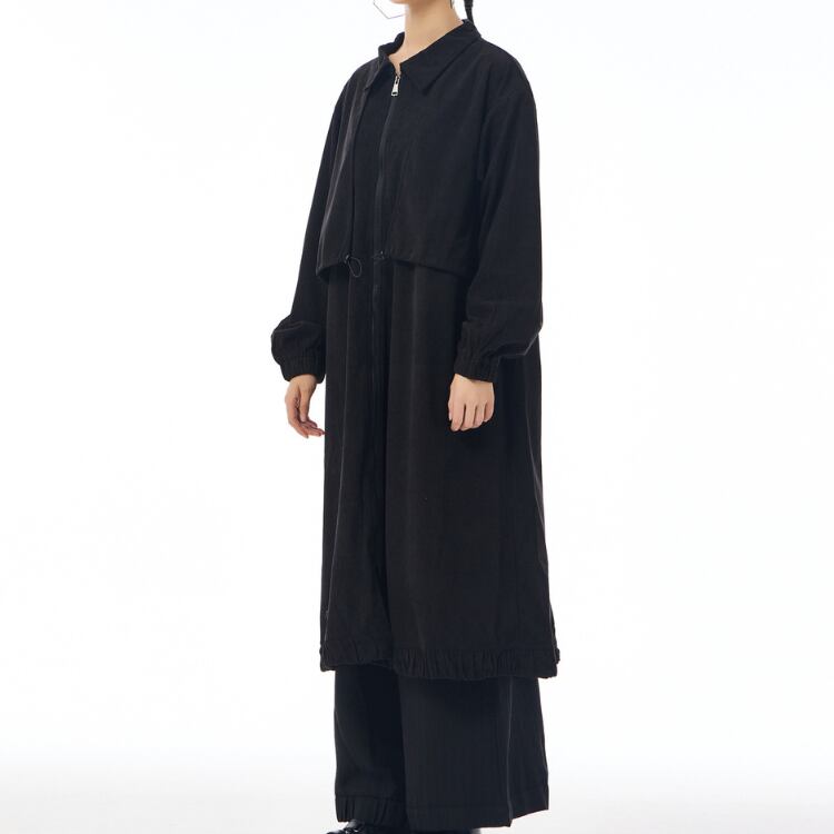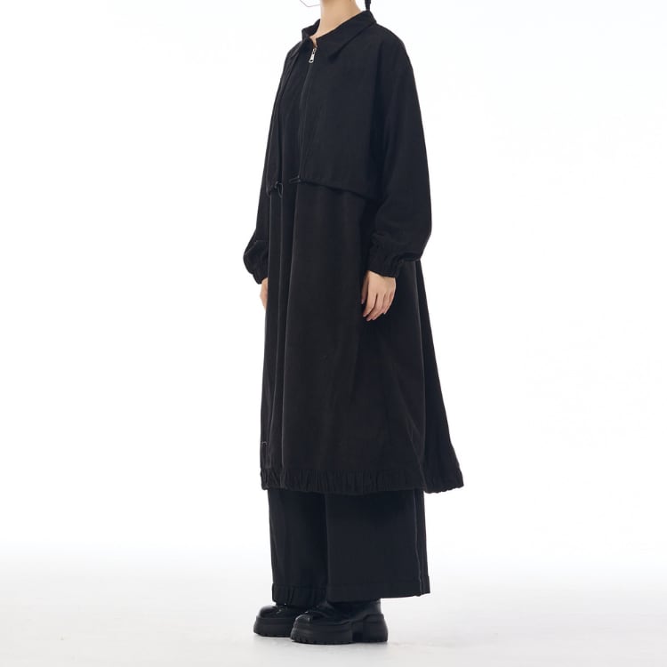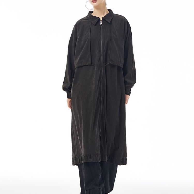 マットな質感が魅力のコーデュロイ風生地を使用したロングコート。