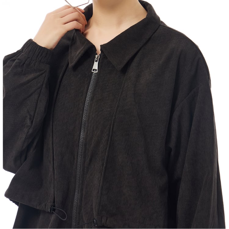 フロントはジップ仕様で、軽やかに羽織れるミニマルデザインです。たっぷりとしたオーバーサイズシルエットに加え、