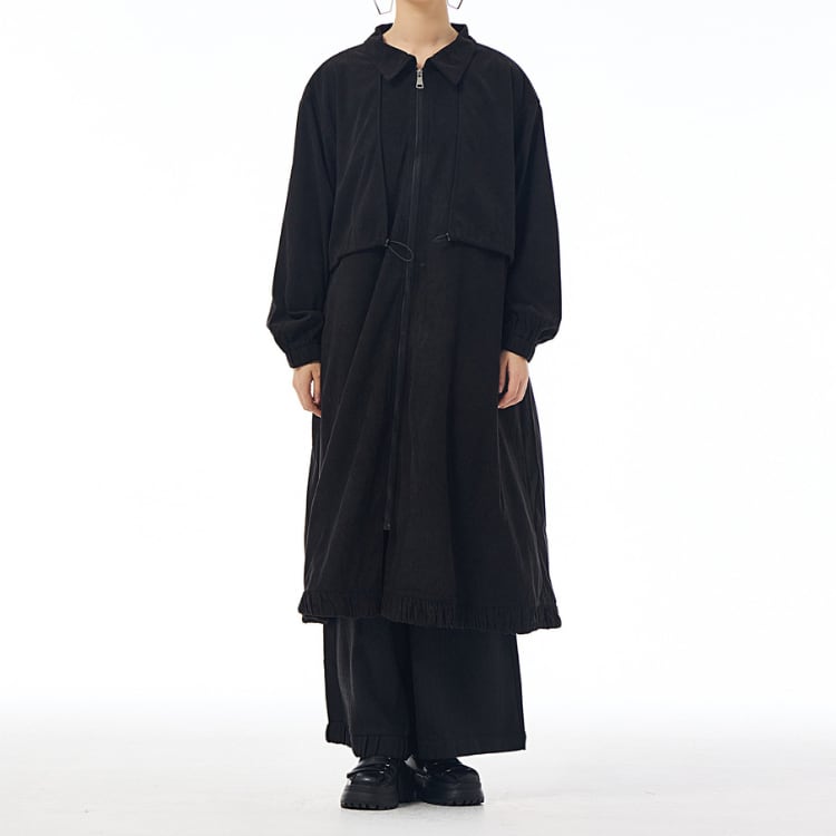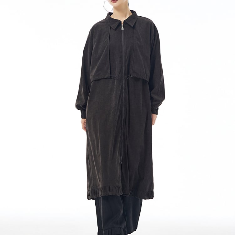 コーデュロイライク ドローストリングロングコート ◆2col R30303