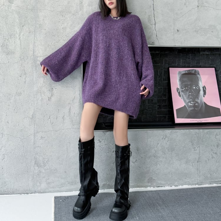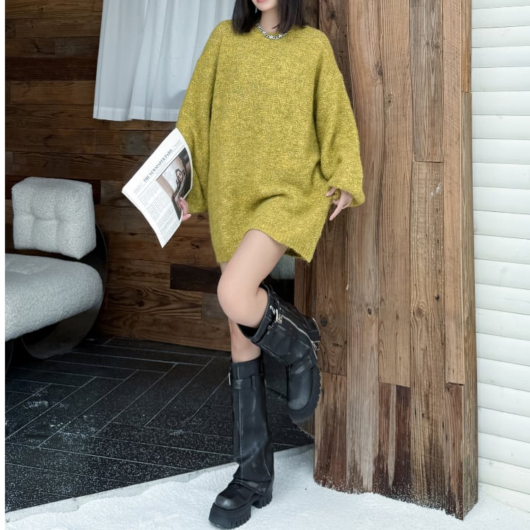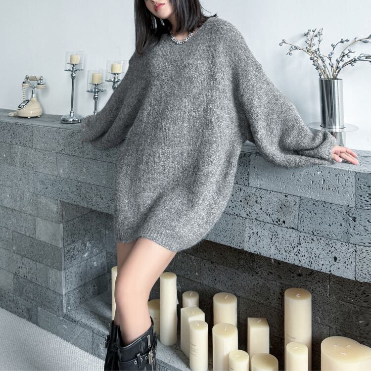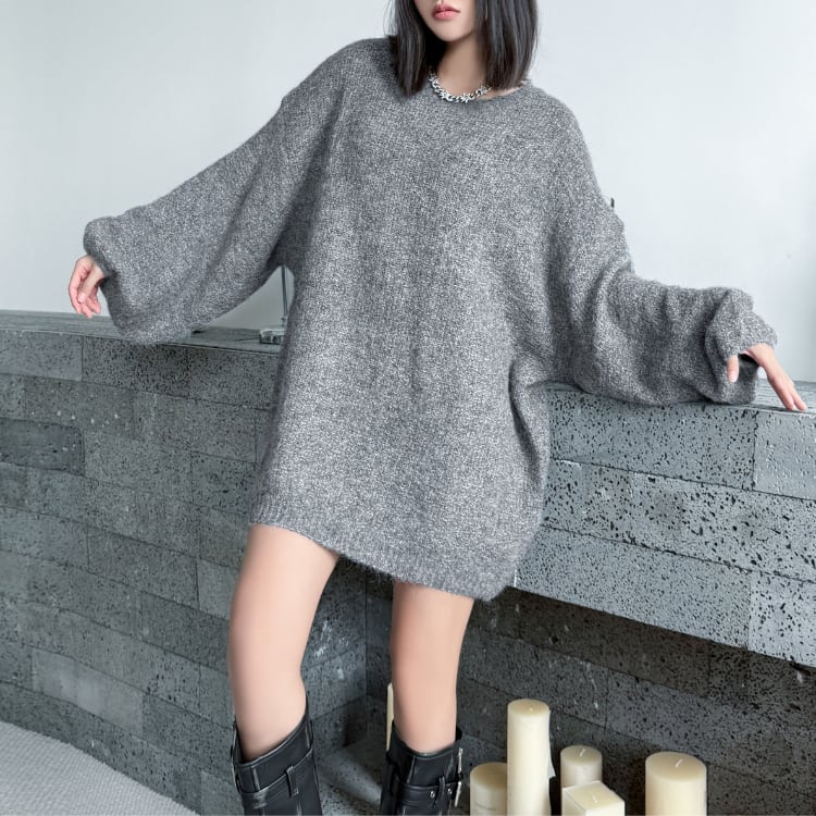モヘアタッチ オーバーサイズニットワンピース ◆4col R30306