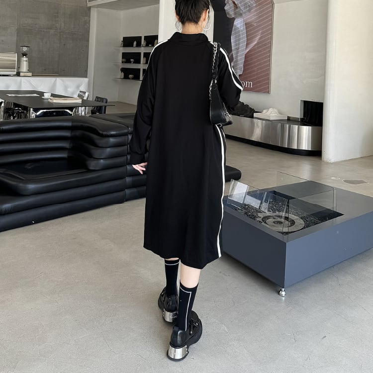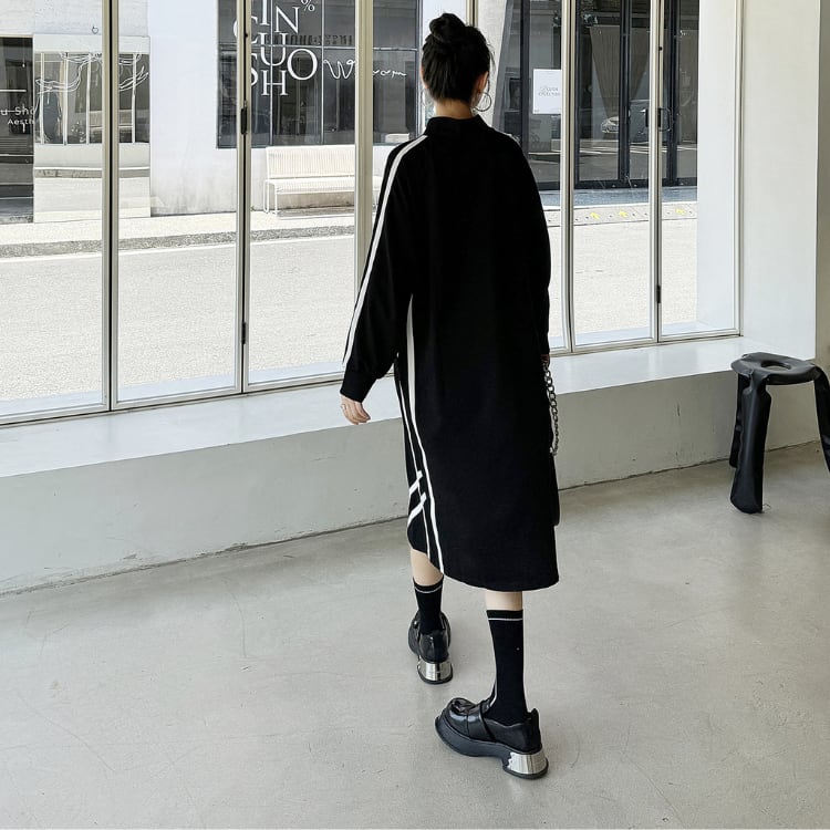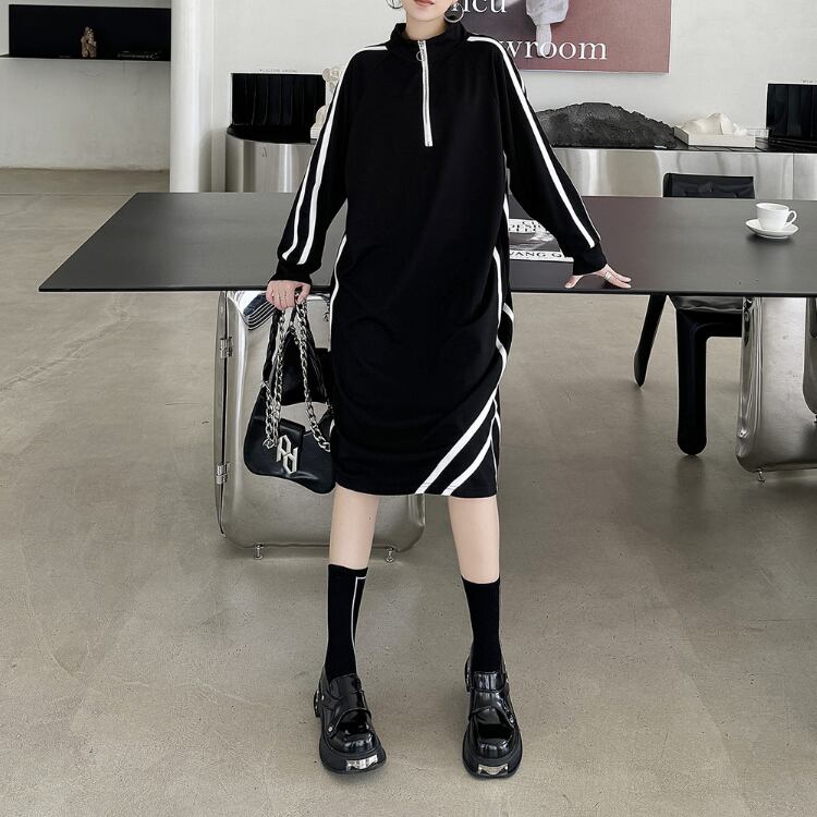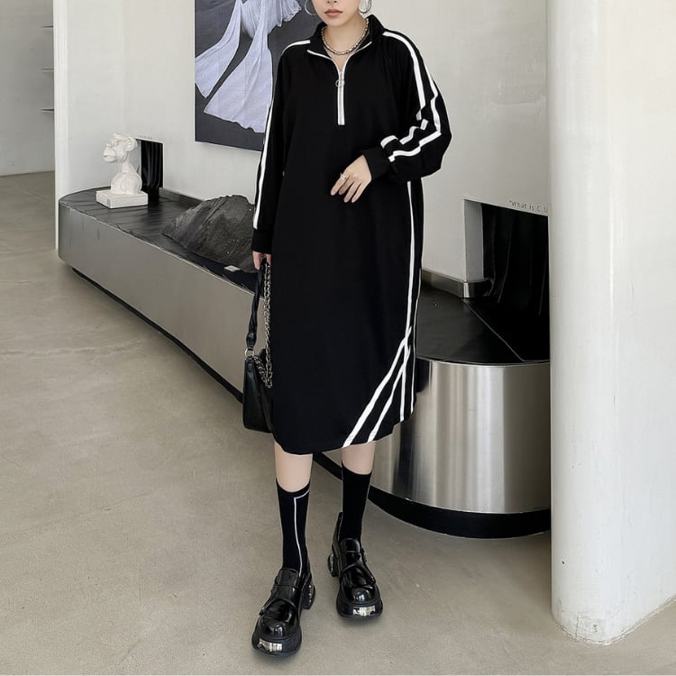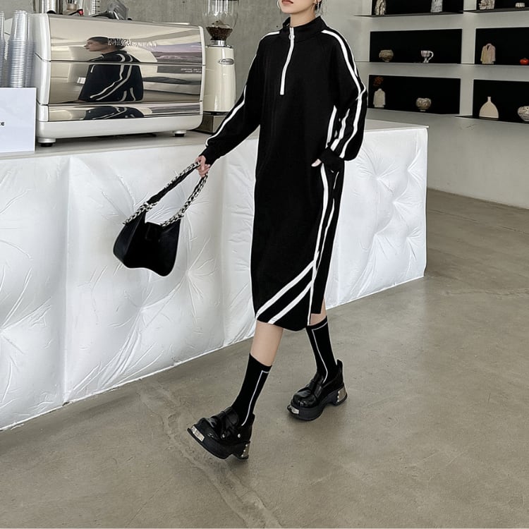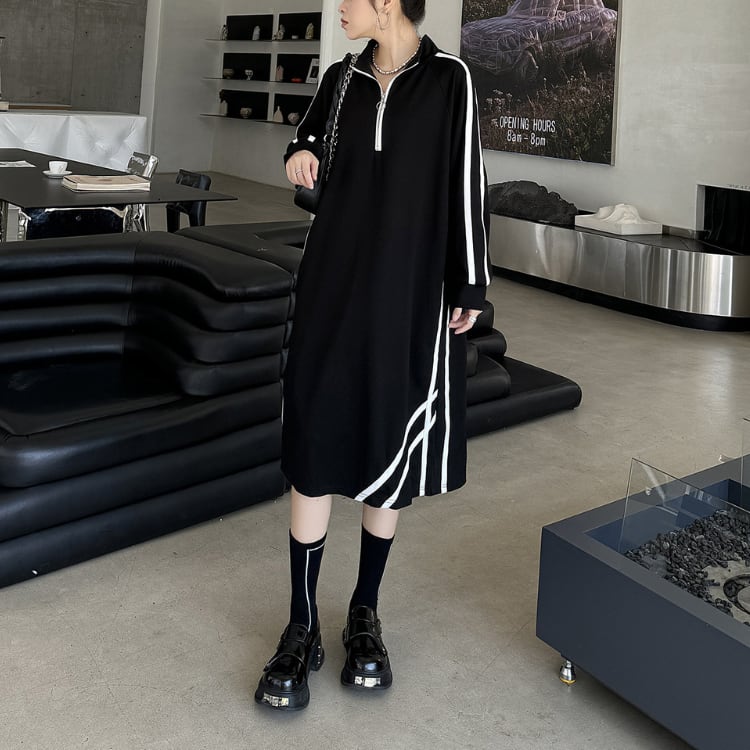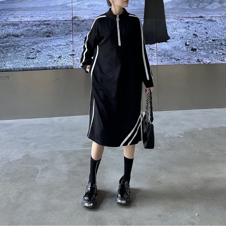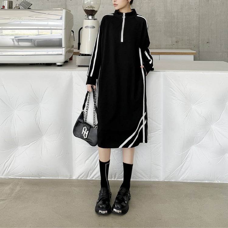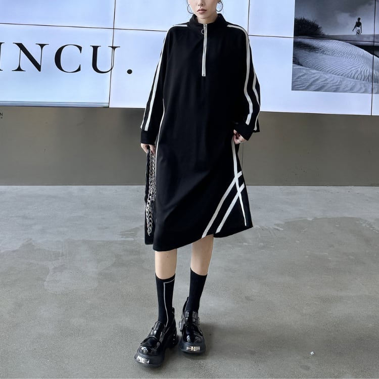 シンプルながらも洗練されたラインデザインが印象的なハーフジップワンピース。