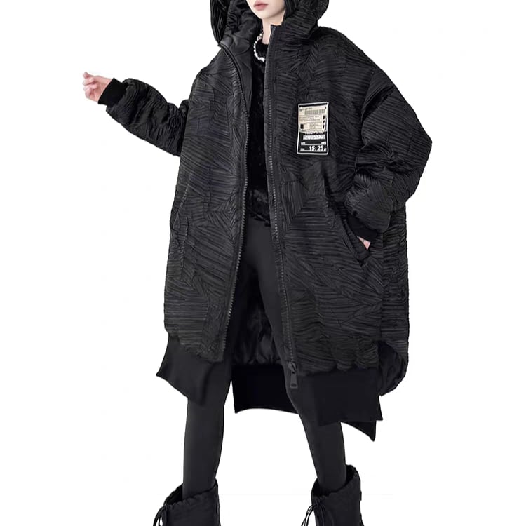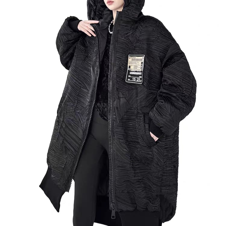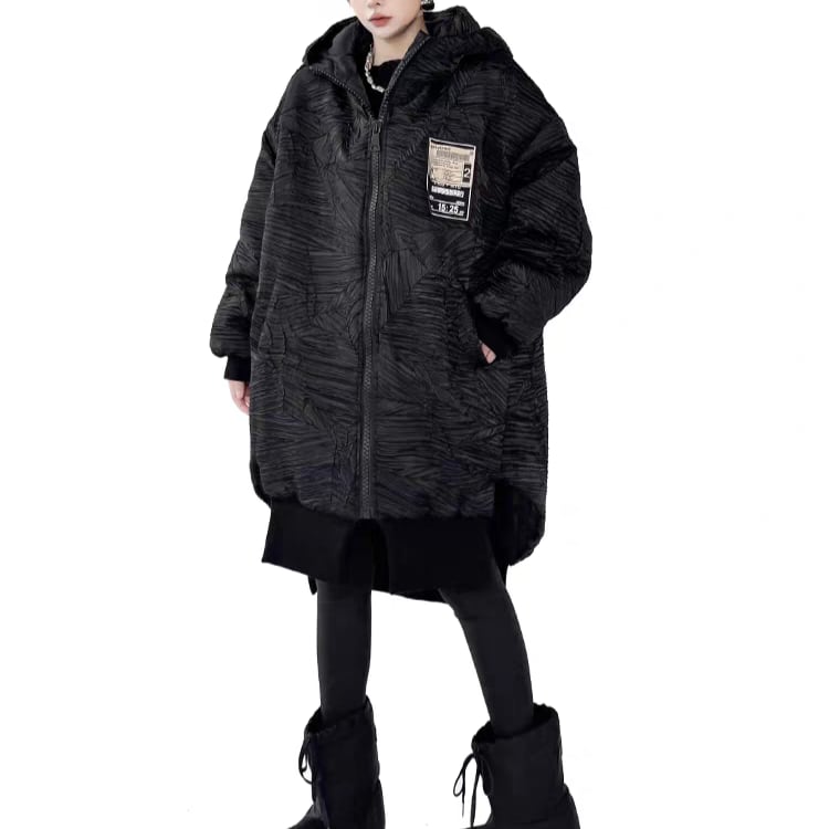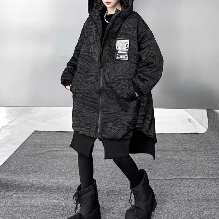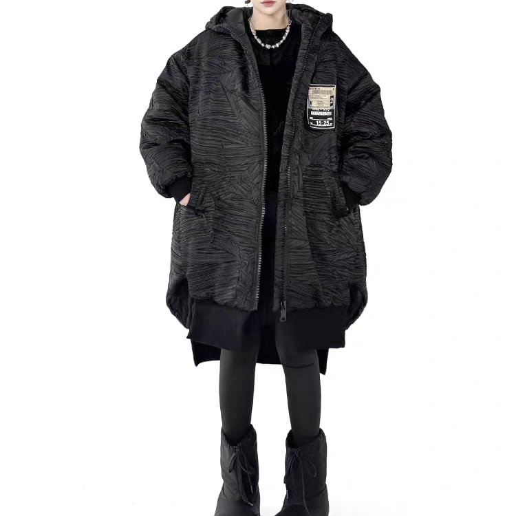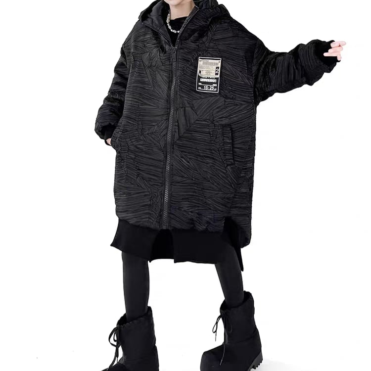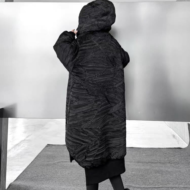 ニッチデザイン 凹凸テクスチャー フーデッド ロングダウンR30344