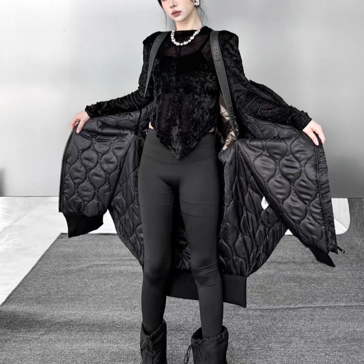 ヨーロッパのニッチなデザインから着想を得た、R.Queenのファッション性の高い中綿入りパーカーコート。