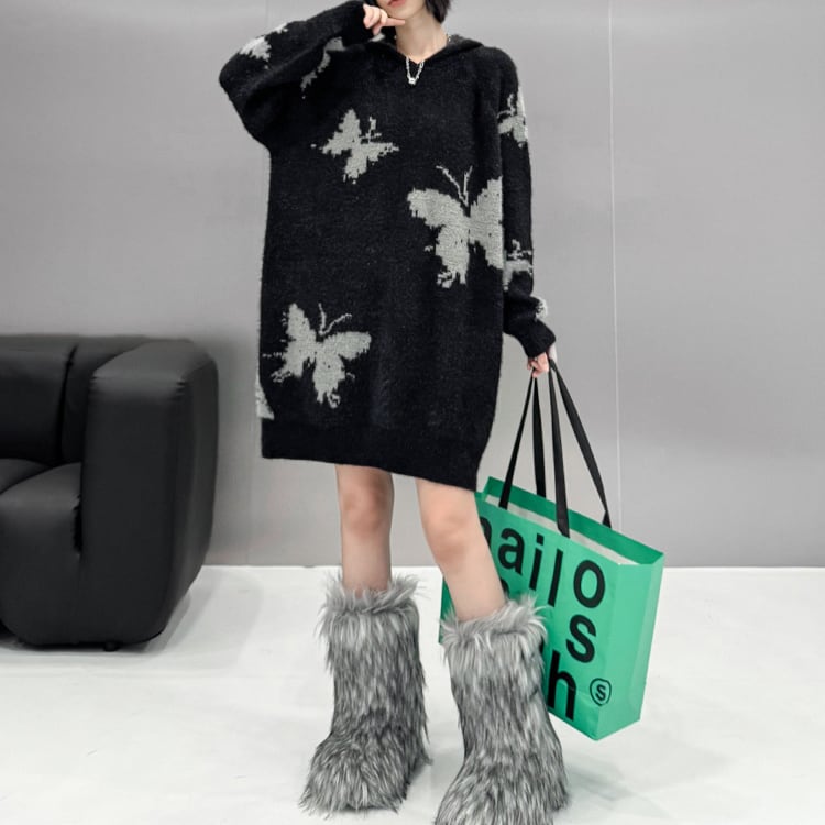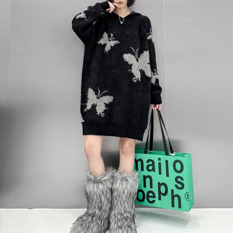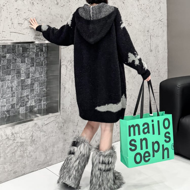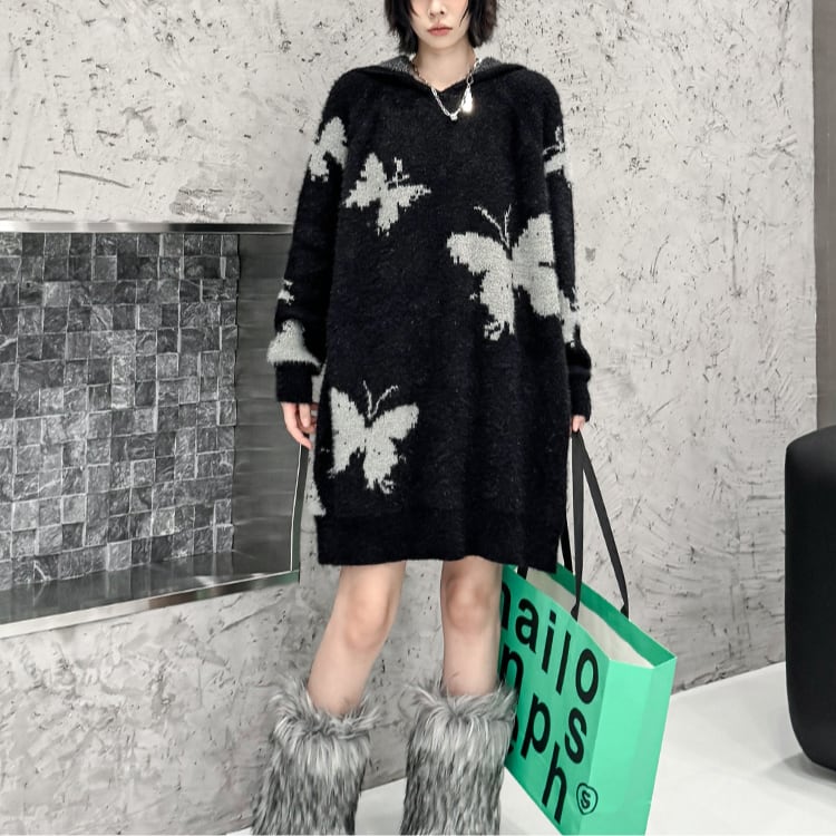 ゆったりとしたシルエットでリラックス感漂う、フード付きワンピース。