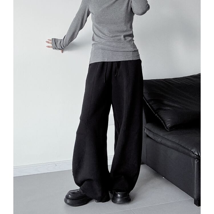 ドローストリング ワイドレッグ フルレングス パンツ ◆2col R30384