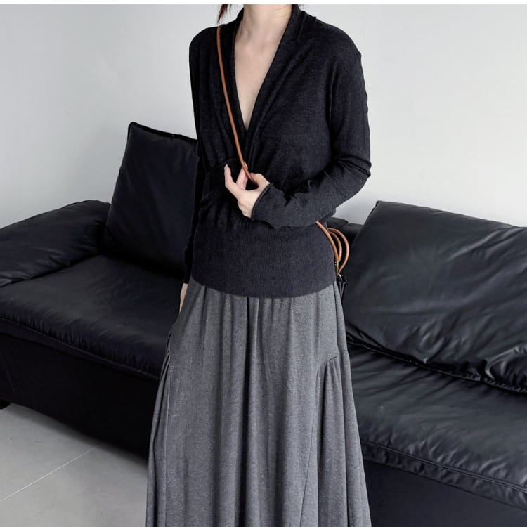 体のラインを拾いにくいドレープ感のあるシルエットで、リラックス感のある着こなしが可能です。