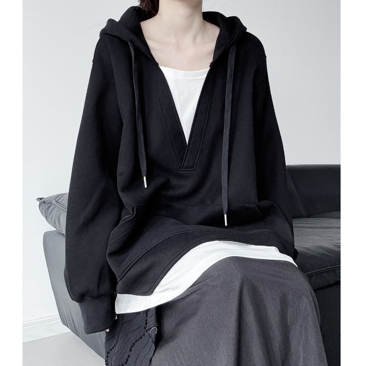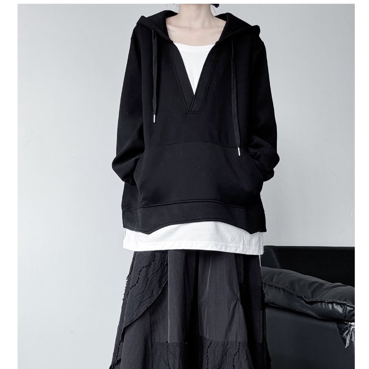 深めのVネックが抜け感を演出するスウェットプルオーバー。