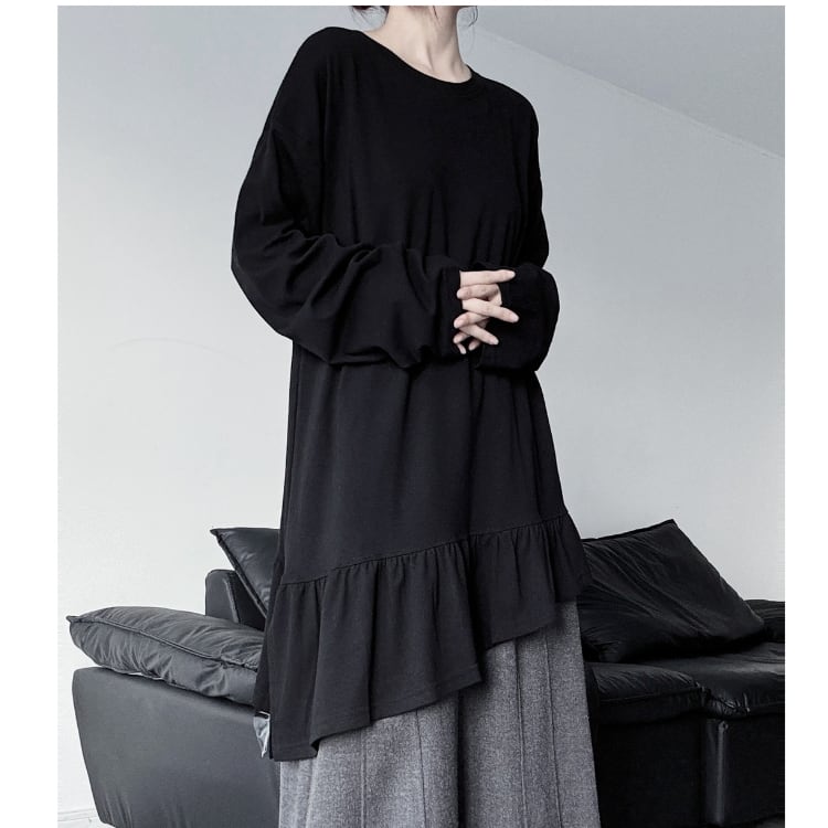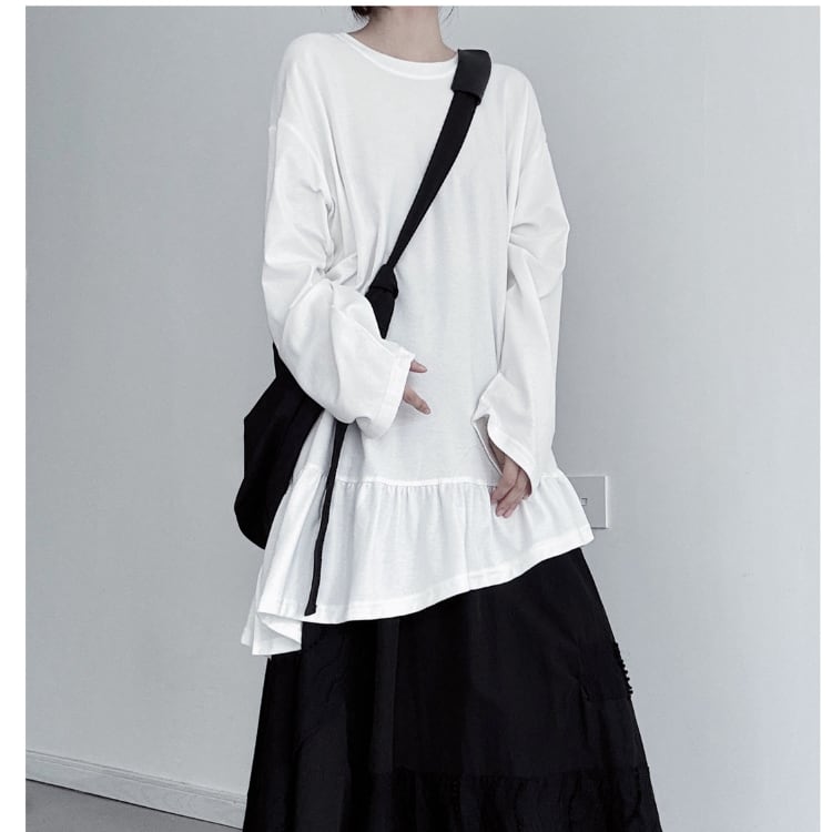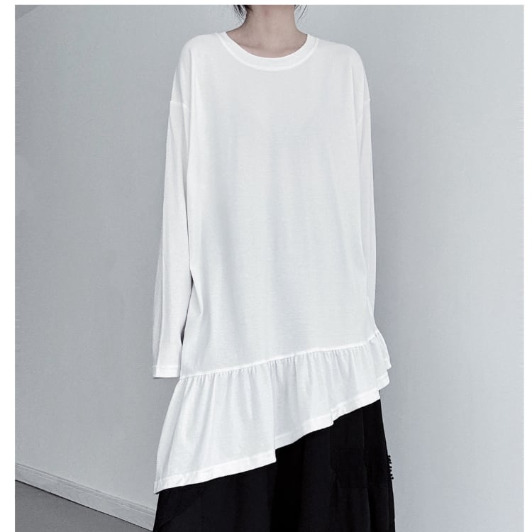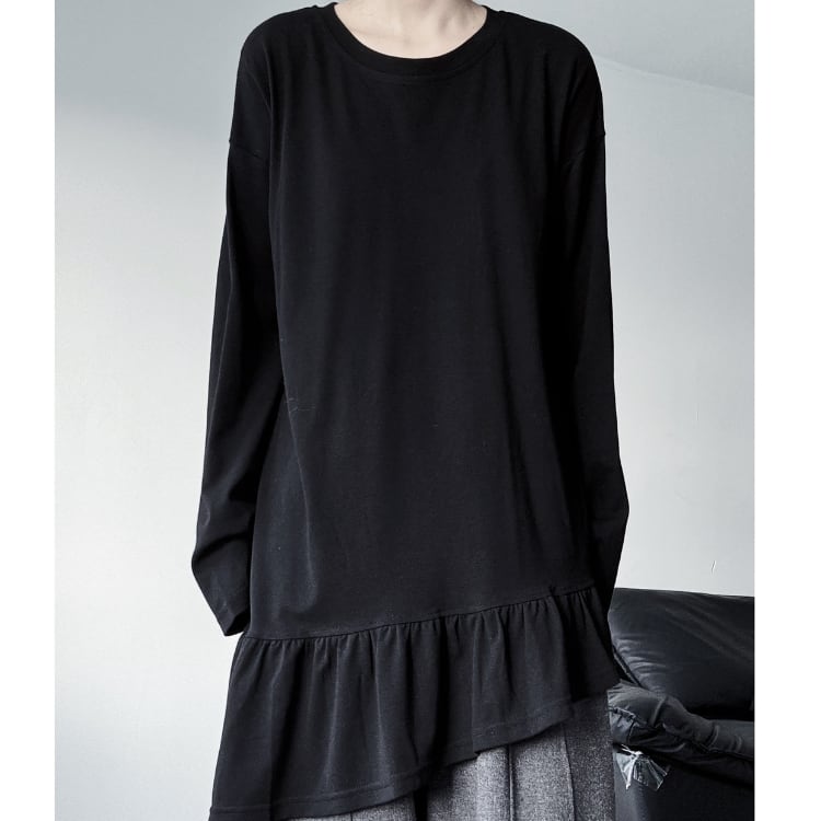 裾にアシンメトリーなフリルをあしらったロングスリーブカットソー。