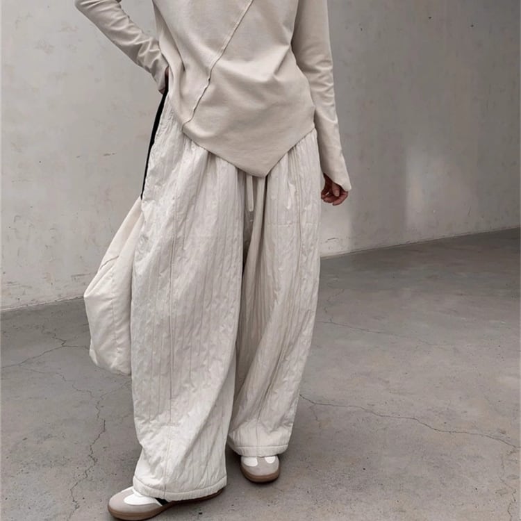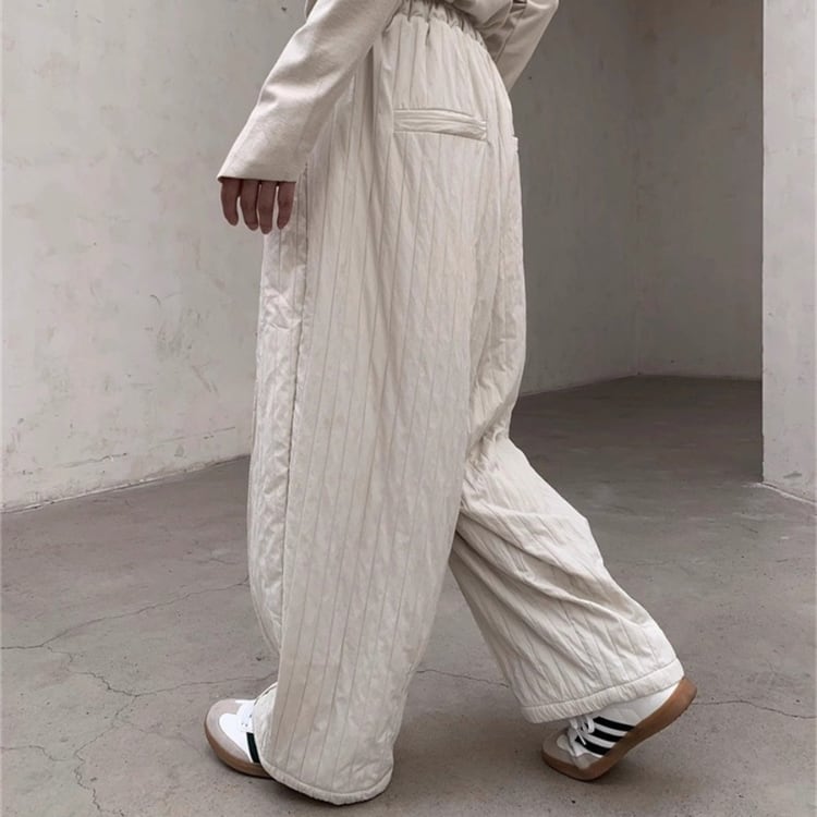 ふんわり裏起毛であたたかく、寒い季節に快適なワイドレッグロングパンツ。