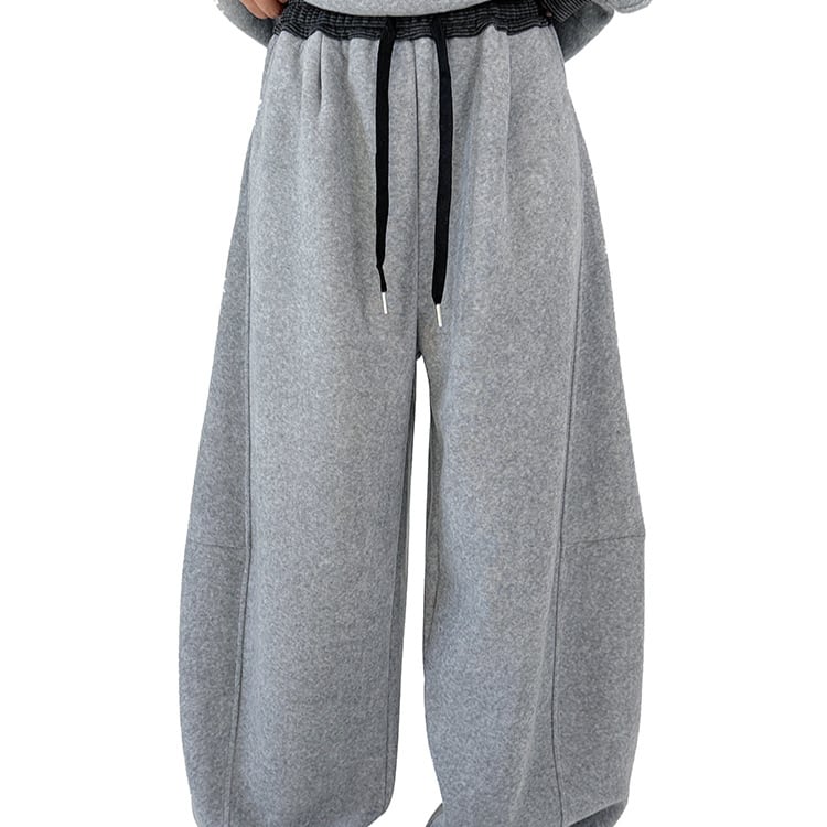 トップスの胸元に配した配色パネルとハーフジップが特徴のスウェットセットアップです。