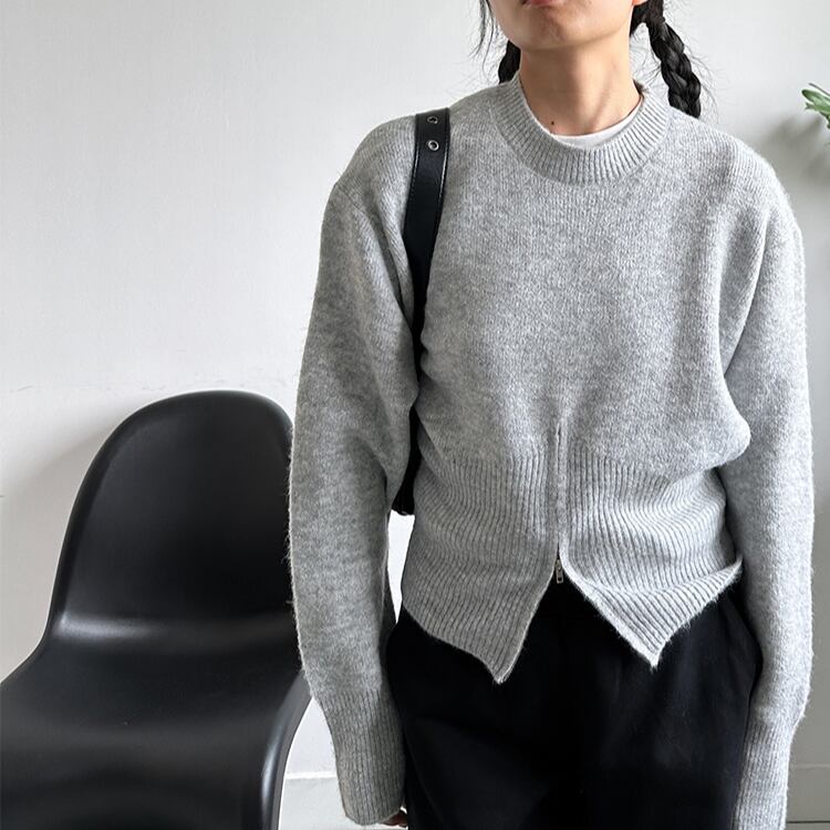 柔らかな風合いのニットを使用したジップデザインのトップスです。