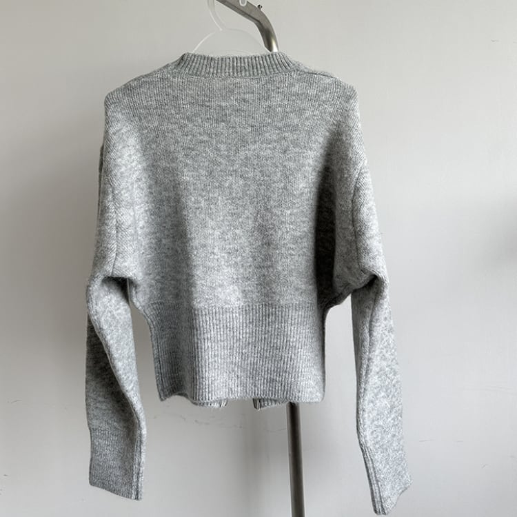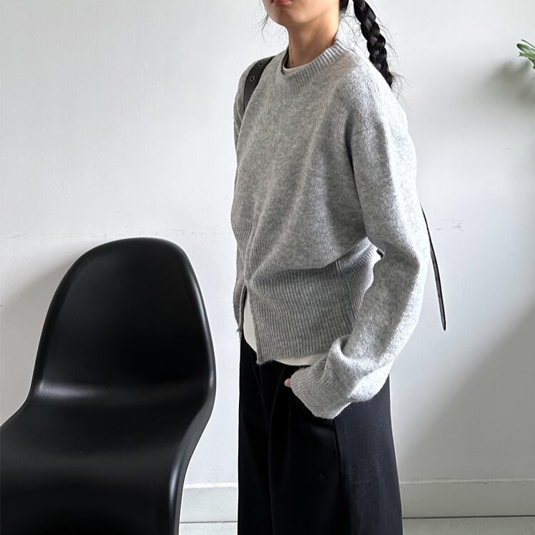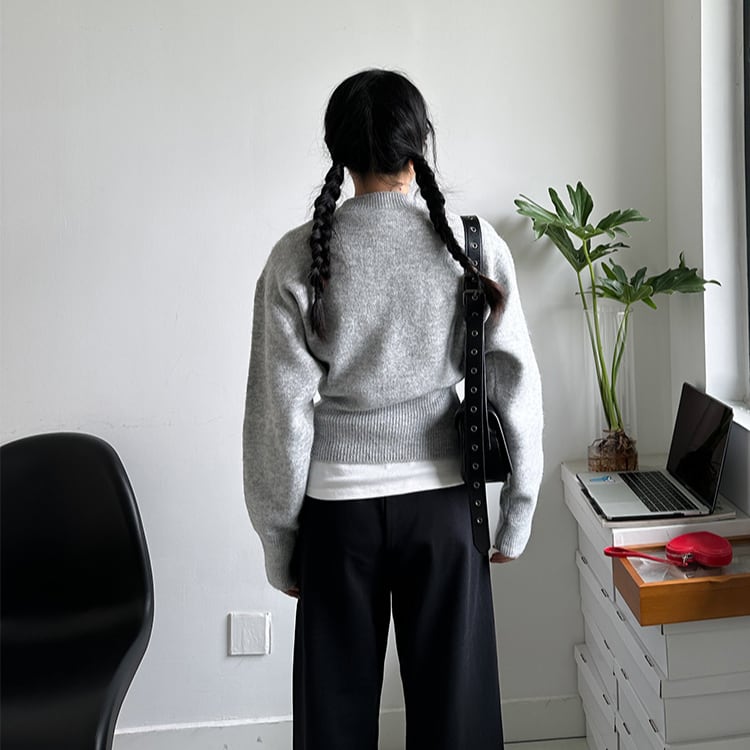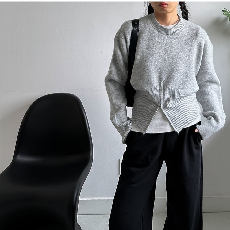 裾の編み地切り替えが自然な立体感を生み、ボトムを選ばず合わせやすいシルエットです。