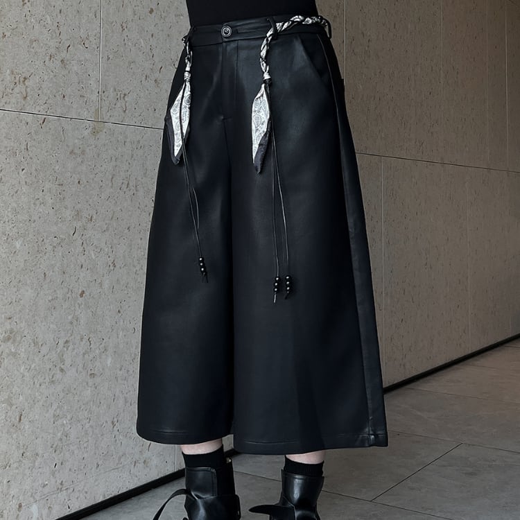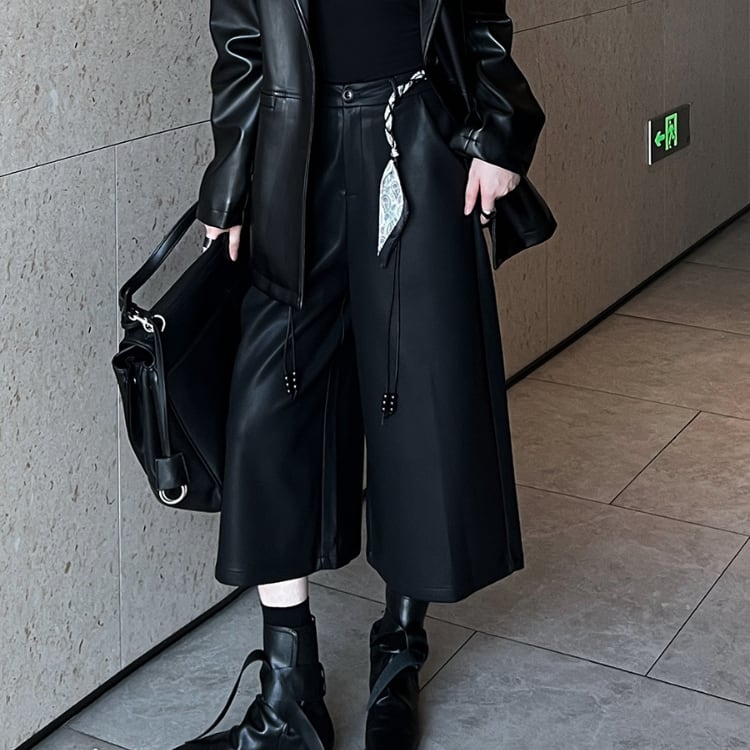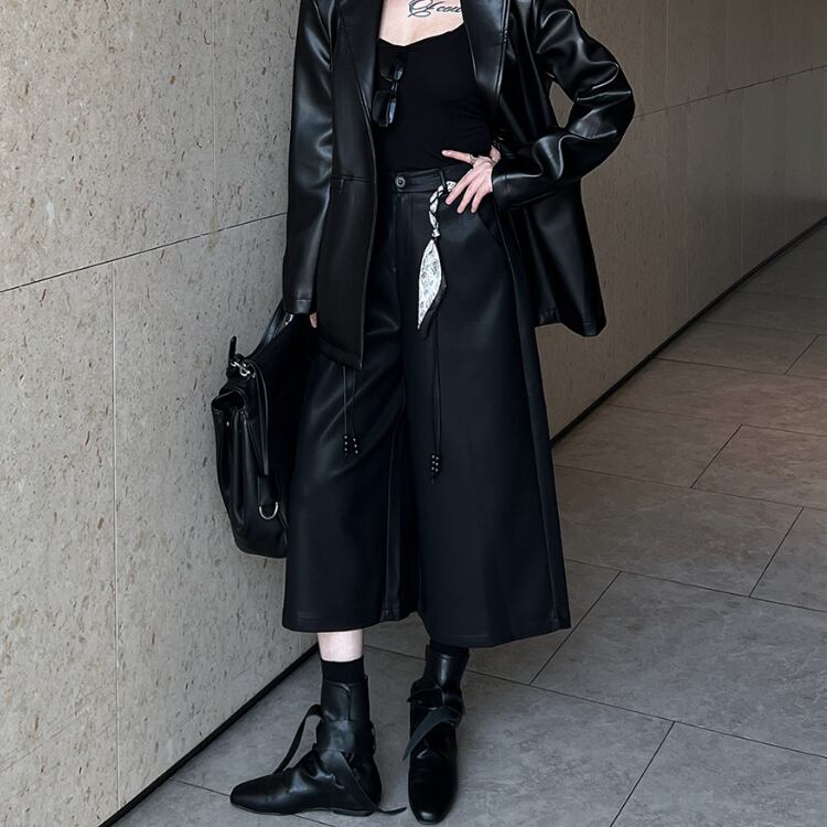 しなやかなレザー調素材を使用したワイドクロップドパンツです。