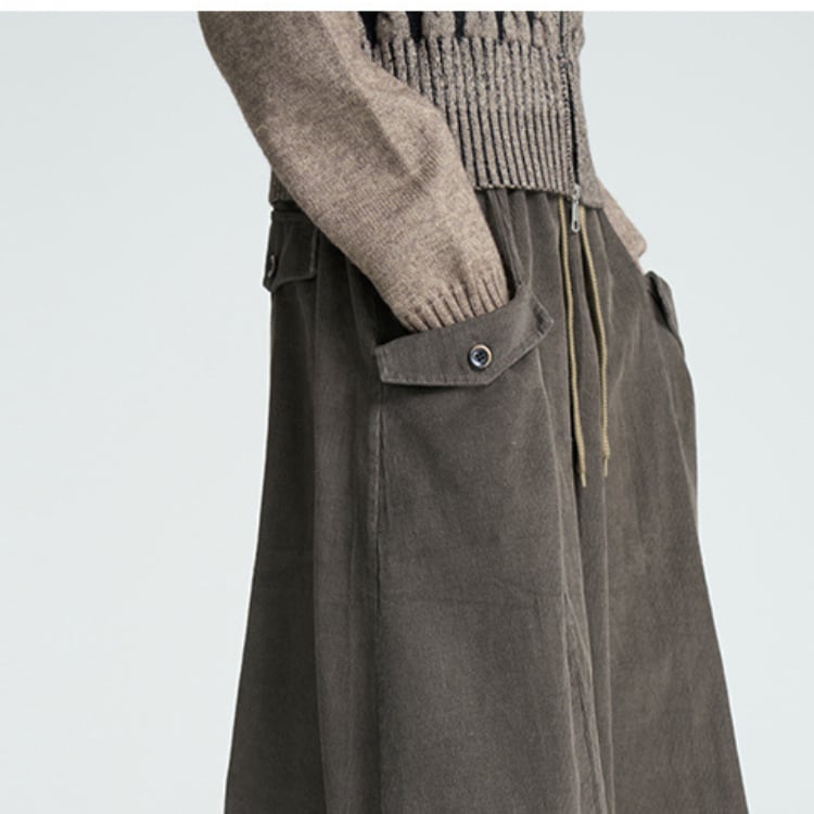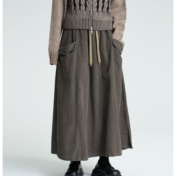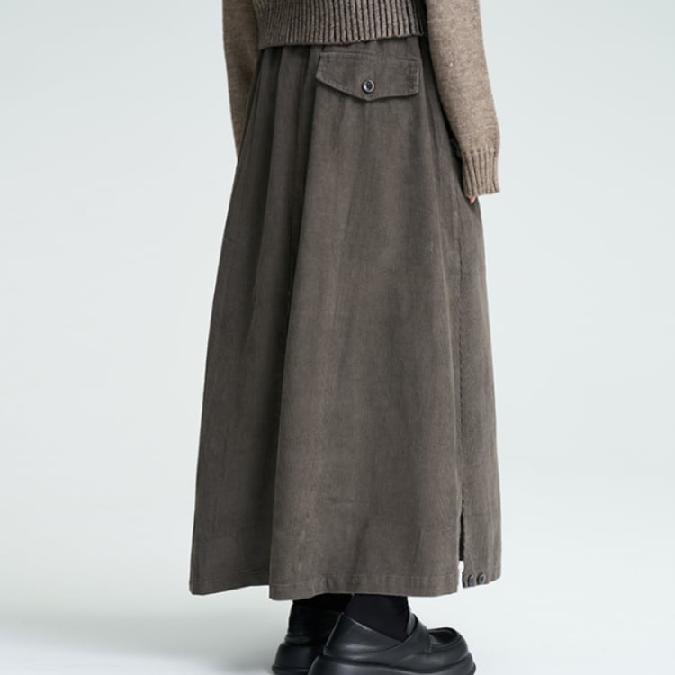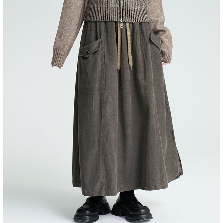 細畝のコーデュロイ調生地を使用したロングスカートです。