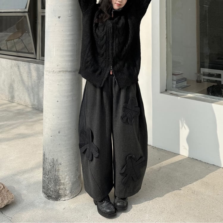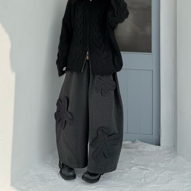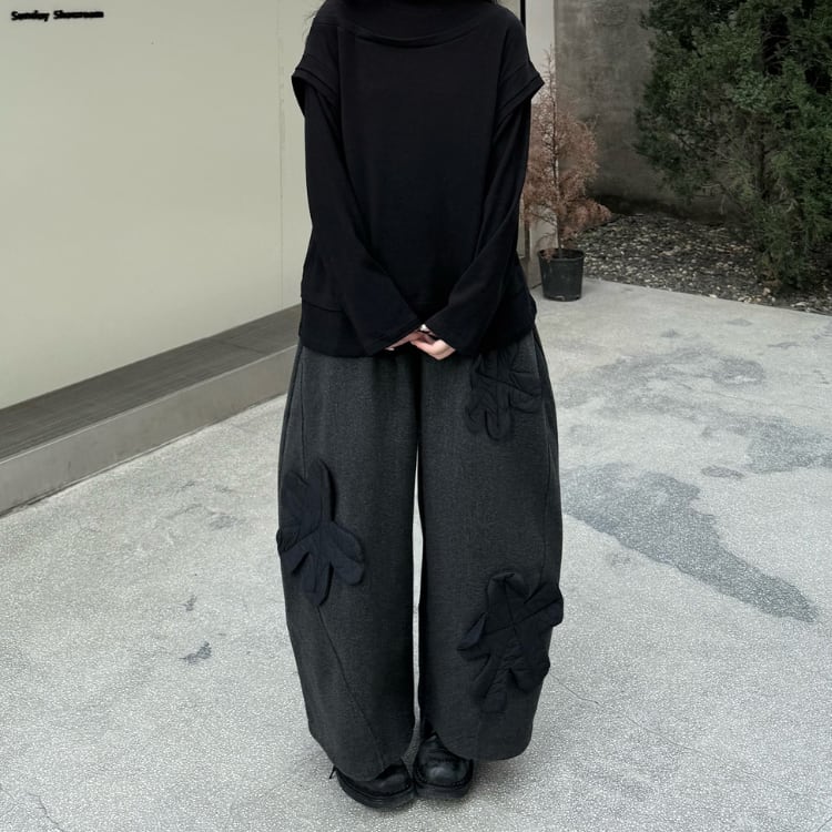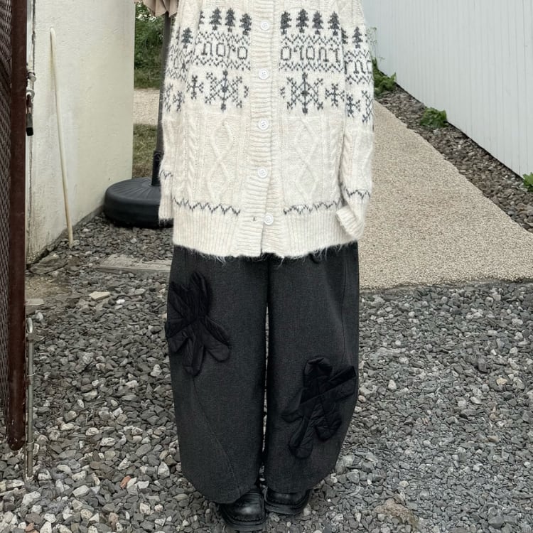 立体モチーフワイドパンツ R30423