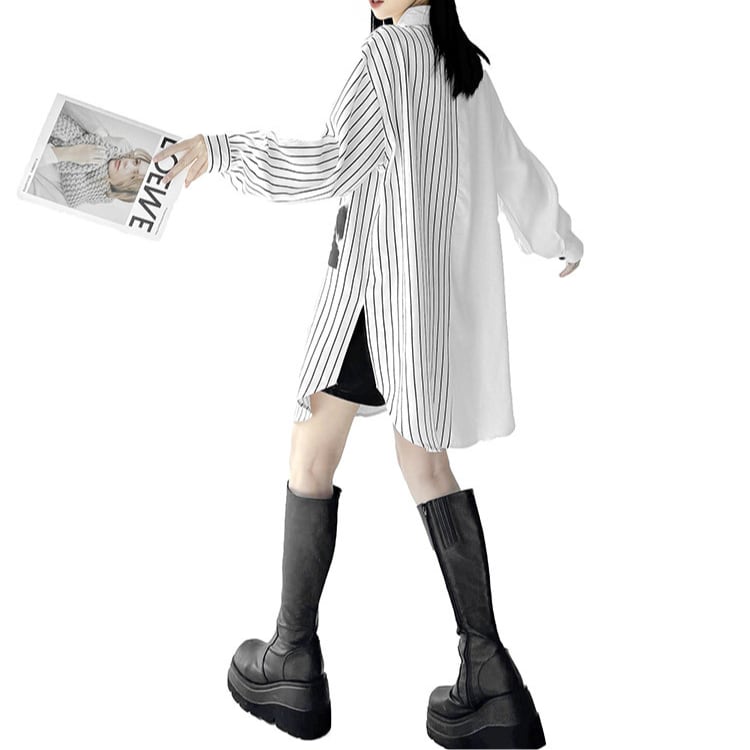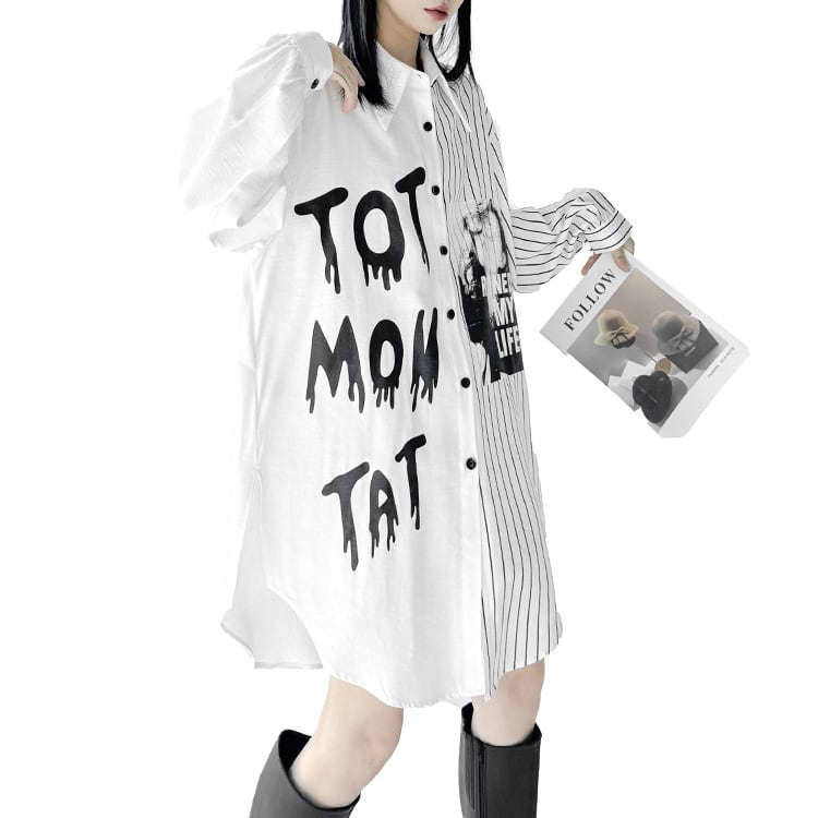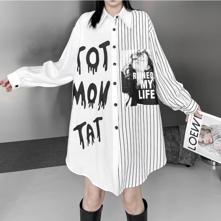 プリント ストライプ 長袖 シャツ ◆2col R30439