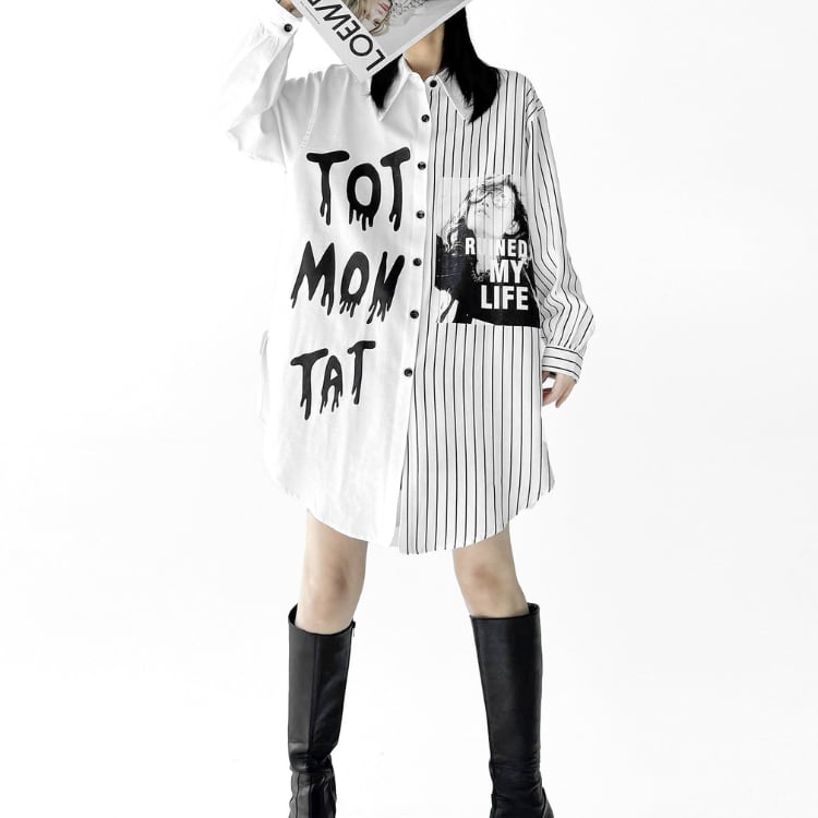 アシンメトリーなデザインが目を引くシャツ。