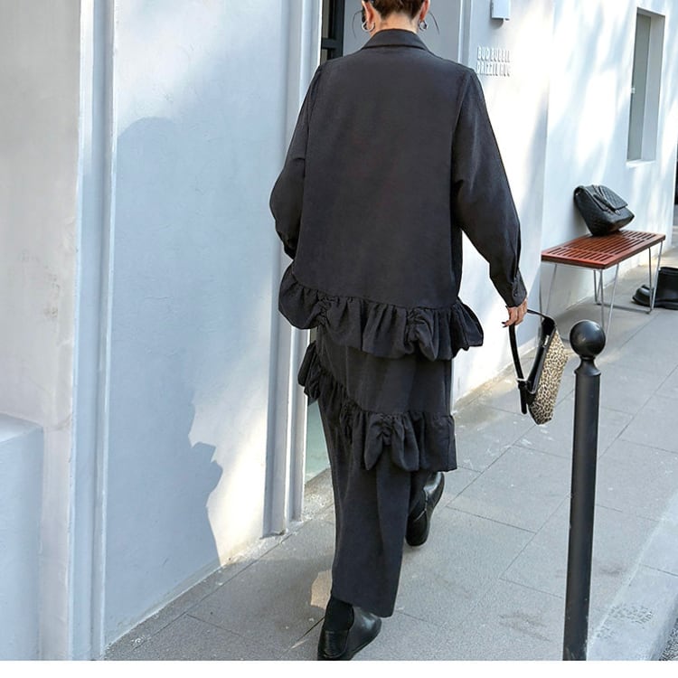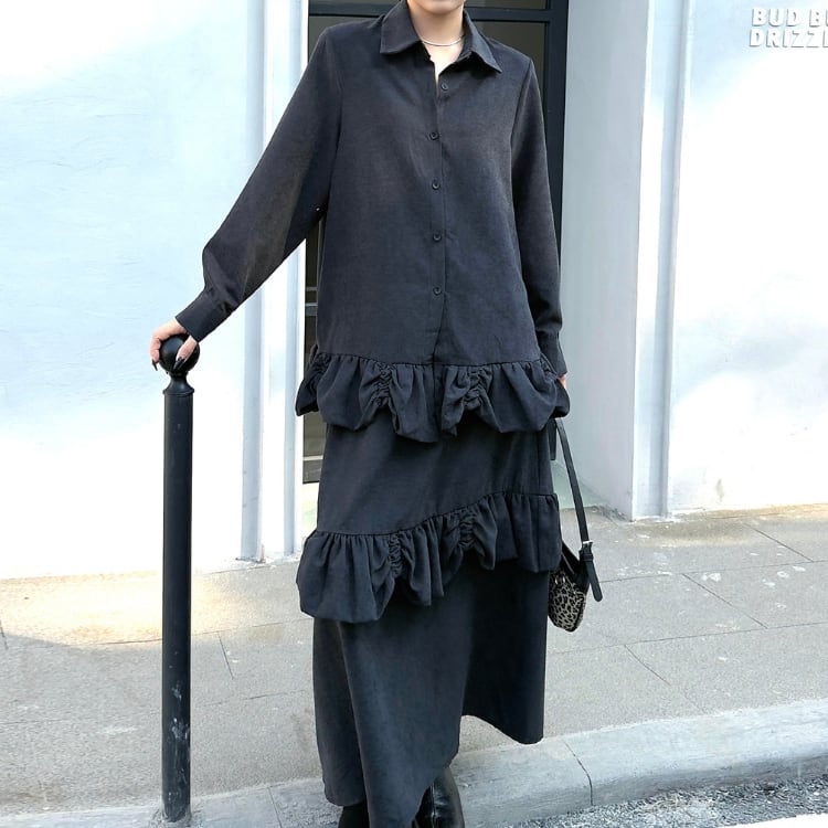 フリルデザインシャツ×ティアードスカートセットアップ R30440